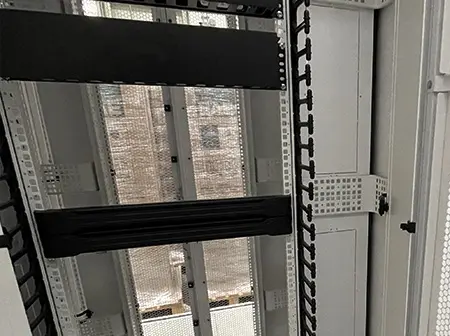 Umfangreiches Zubehör für das Luftstrommanagement zur Optimierung der thermischen Leistung innerhalb des Racks. Luftleitbleche, Blindplatten und Bodenabdeckungen verhindern die Vermischung von Kalt- und Warmluft, steigern die Energieeffizienz und verlängern die Lebensdauer der IT-Komponenten.